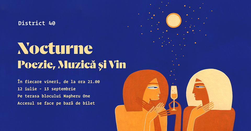 Vineri, 9 august, de la ora 21.00, pe terasa blocului Magheru One are loc cea de-a cincea Nocturnă de Poezie Contemporană. Citim sub cerul liber, deasupra Bucureștiului, poezia Elenei Vlădăreanu și a Ioanei Vintilă și ascultăm selecțiile muzicale ale Claudiei Șpîrlea.